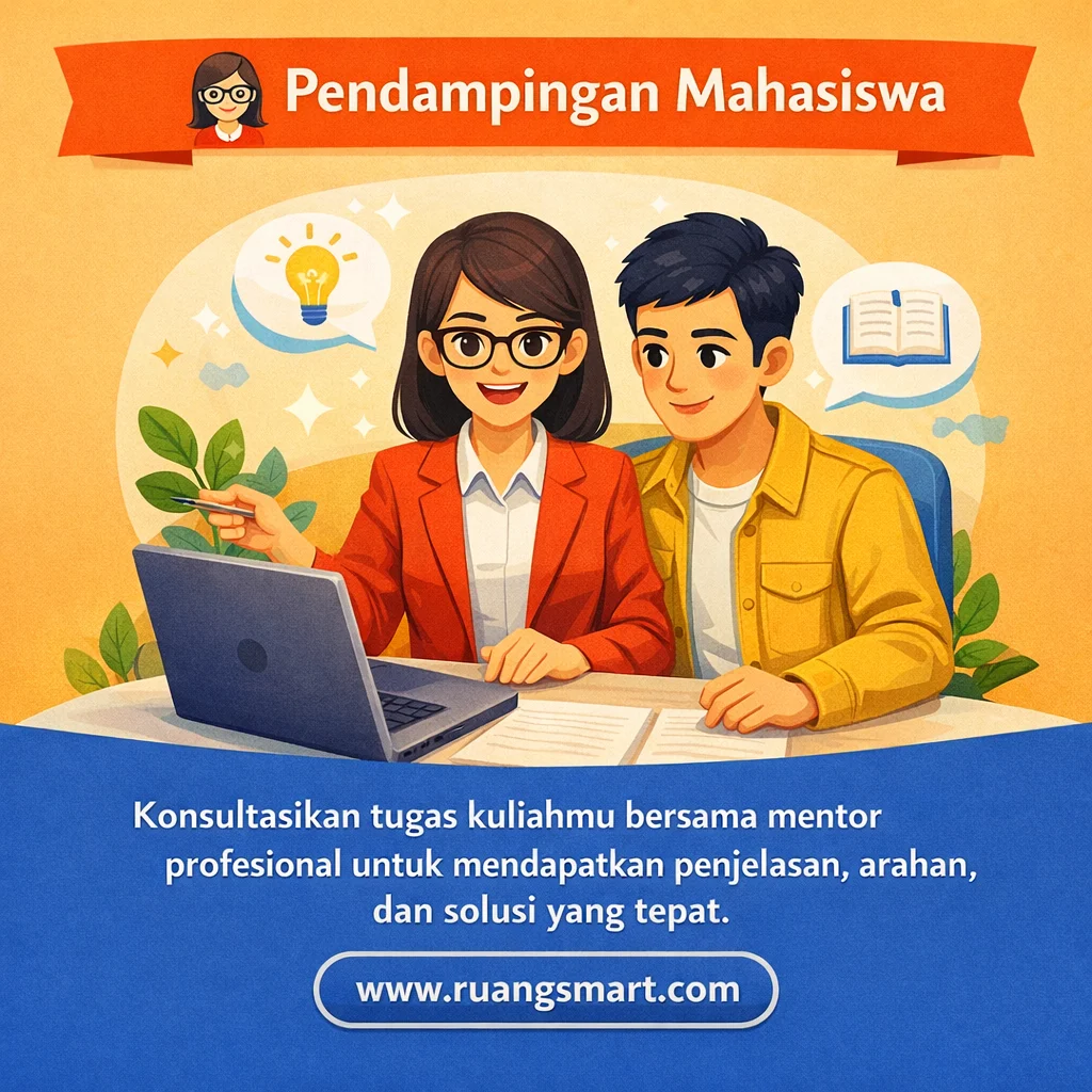 Konsultasikan tugas kuliahmu bersama mentor profesional untuk mendapatkan penjelasan, arahan, dan solusi yang tepat.